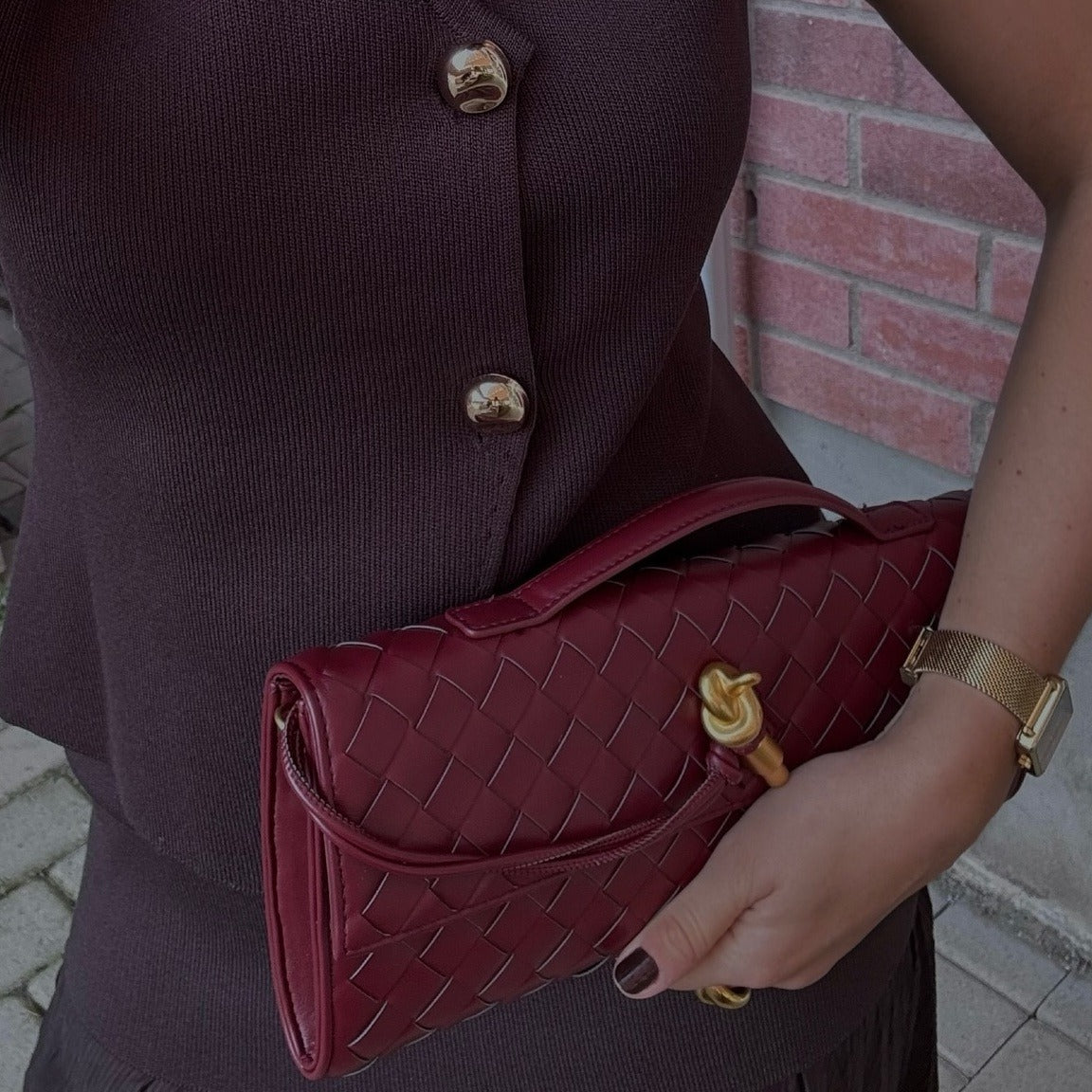 Maak kennis met onze Bianca Woven Bag, een verfijnd accessoire dat het kenmerkende vakmanschap in leer en de nauwgezette aandacht voor detail van het huis laat zien. Deze tas is vakkundig vervaardigd van hoogwaardig veganistisch leer en heeft een prachtig geweven textuur, verrijkt met een unieke knoopsluiting en een gepolijste goudkleurige toggle, wat zorgt voor een elegante uitstraling. Dankzij het compacte maar praktische formaat neem je moeiteloos je essentials mee, zoals je telefoon, een kaarthouder en lipstick. Ideaal voor evenementen, diners en speciale gelegenheden wanneer je licht wilt reizen. De Bianca Woven Bag combineert tijdloze stijl met duurzame materialen en is een onmisbare accessoire voor de moderne, milieubewuste garderobe. Zoekwoorden: vegan tas, geweven handtas, duurzame mode, luxe vegan leer, elegante damesaccessoire.