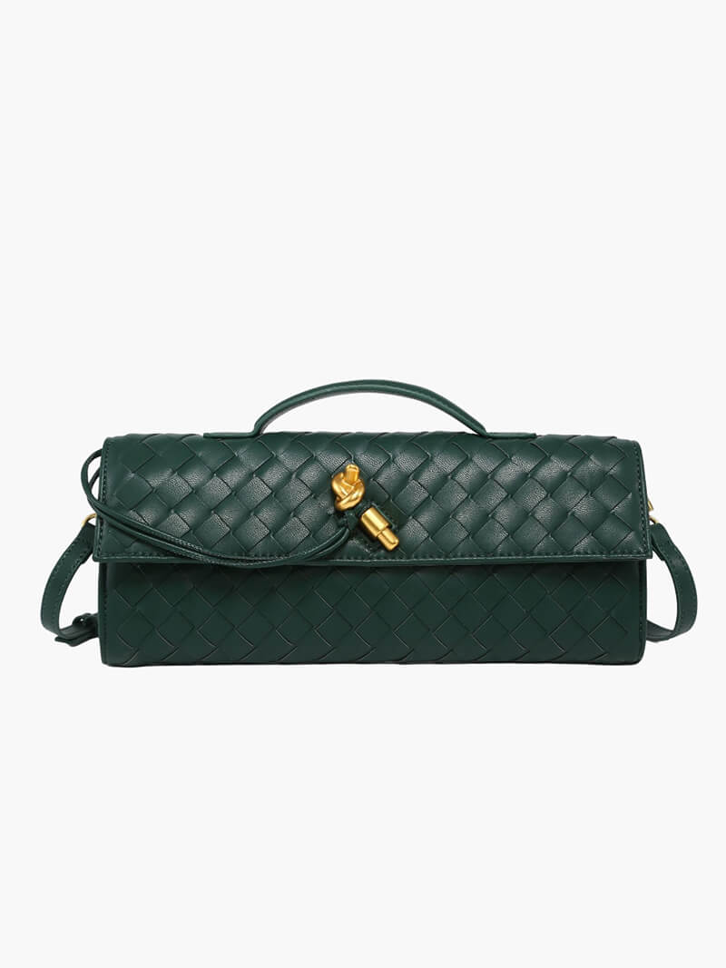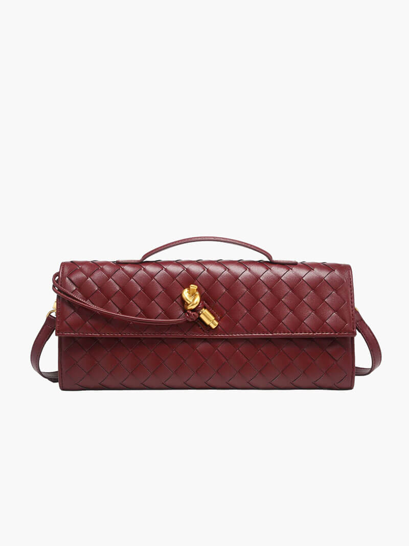 Introducing our Bianca Woven Bag, a sophisticated piece that showcases the house’s signature leather craftsmanship and meticulous attention to detail. Expertly crafted from premium vegan leather, it features a beautifully woven texture enhanced by a unique knot tie detail with a polished gold-tone toggle fastening, adding a touch of refined elegance. Its compact yet practical size is designed to fit your essentials — from your phone to a cardholder and lipstick — making it the perfect companion for events, dinners, and special occasions when you prefer to travel light. Combining timeless style with sustainable materials, the Bianca Woven Bag is a must-have accessory for the modern, eco-conscious wardrobe.