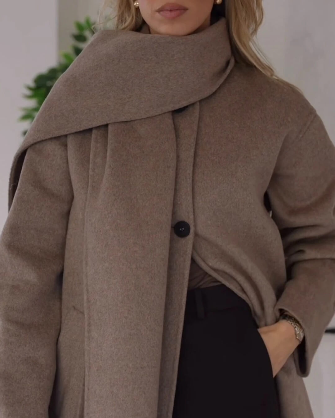 Ce manteau femme chic Cecille en fausse laine avec écharpe associe un style vintage à une fonctionnalité moderne, ce qui en fait un ajout parfait à votre garde-robe d'automne et d'hiver. Doté d'une décoration écharpe unique et d'un col rond confortable, ce manteau à manches longues est idéal pour superposer vos tenues préférées. Parfait pour les femmes à la recherche d'un manteau élégant, chaud et tendance pour la saison froide.
