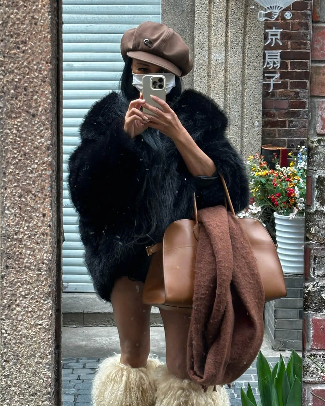 Manteau en laine avec poignets en fourrure de renard